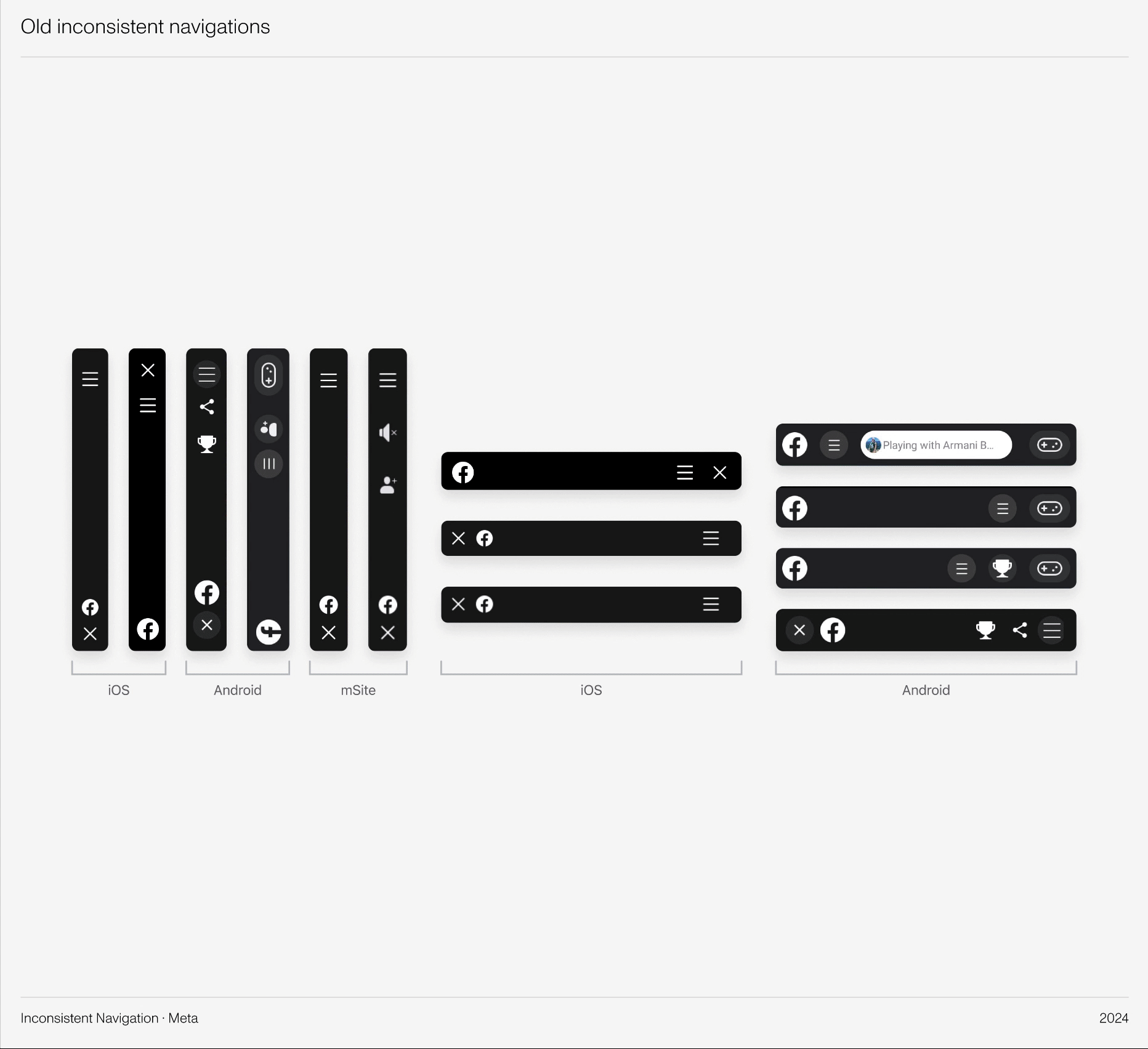 The design issue stems from short-sighted solutions developed in isolation, resulting in numerous variations. This lack of a cohesive strategy has led to feature creep, undermining the overall user experience. Short term solutions led to long term user abandonment.